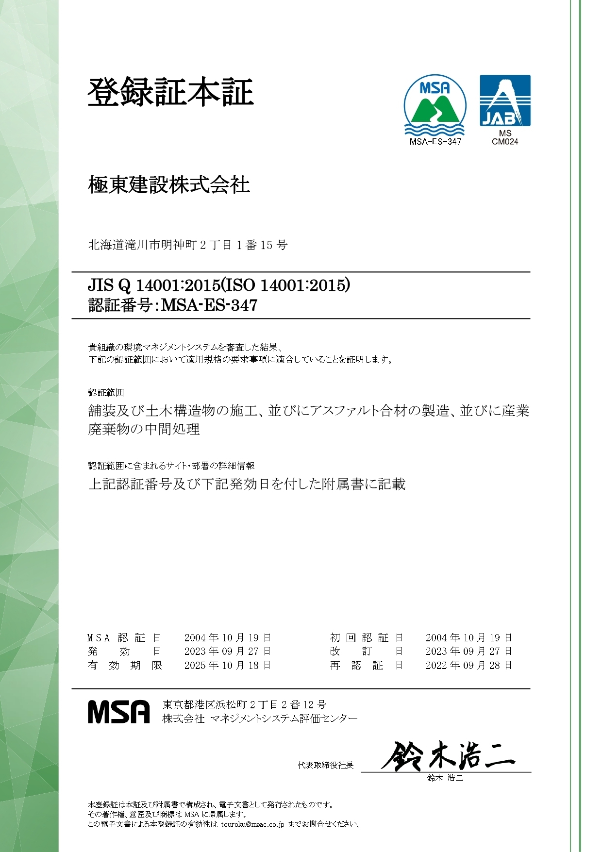 - この品質・環境方針は、一般の方からの要求に応じて提供する。